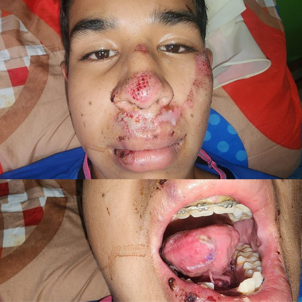 Fernando sufrió una quemadura en el rostro tras un accidente con una olla de presión.