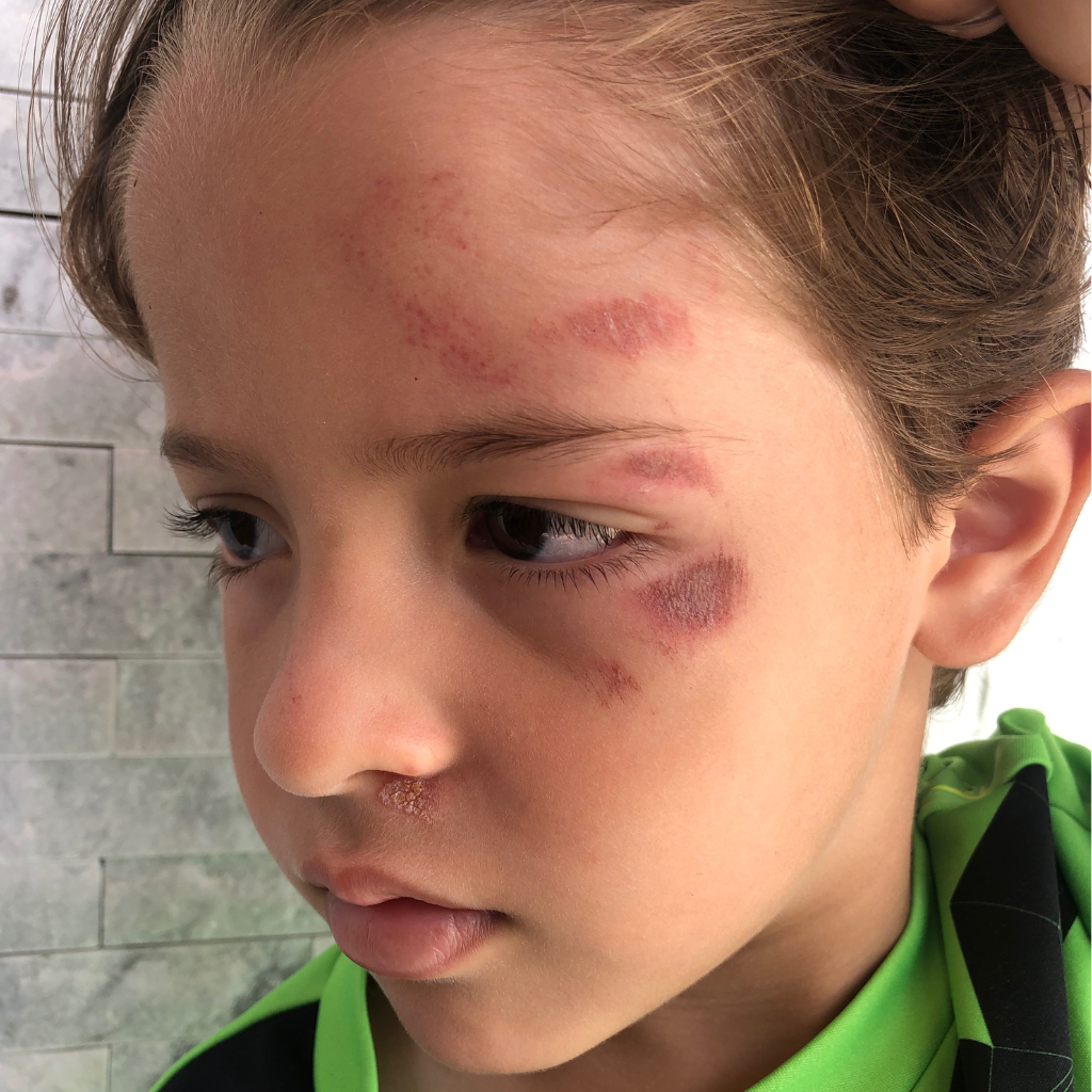 Alejandro, un niño activo y lleno de energía, cayó de su bicicleta a alta velocidad y golpeó su rostro contra el pavimento. La abrasión fue extensa y profunda.